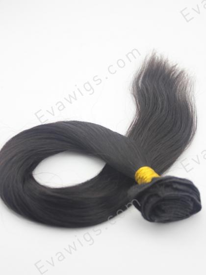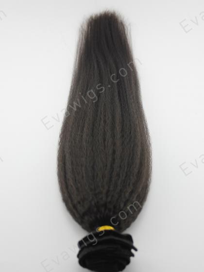Currently, we offer our customers double wefted 8-piece clip in hair extensions about 100grams each bundle, including one piece in 8 inch with 4 clips, one piece in 7 inch with 4 clips, two 6 inch pieces each with 3 clips, and four 2 inch pieces each with 1 clip. If you would like to measure and cut the length by yourself, please leave us a massage when placing your order.